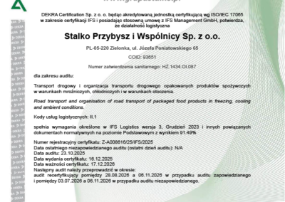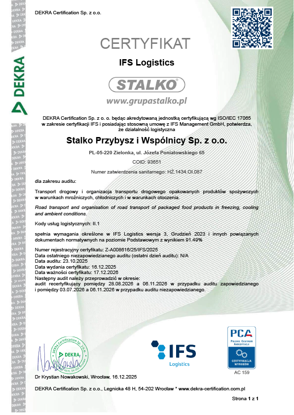 Jesteśmy dumni z posiadania certyfikatów ISO 9001 i ISO 14001, a także z przyznanego nam brązowego medalu EcoVadis, który potwierdza nasze zaangażowanie w odpowiedzialny i zrównoważony rozwój. Znaleźliśmy się również w gronie firm wyróżnionych gwiazdką „Zielony Przewoźnik” w ramach programu FUMO.